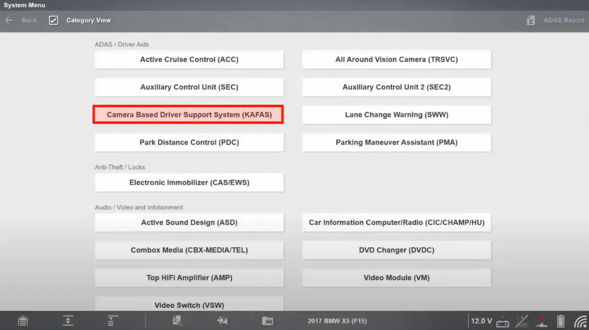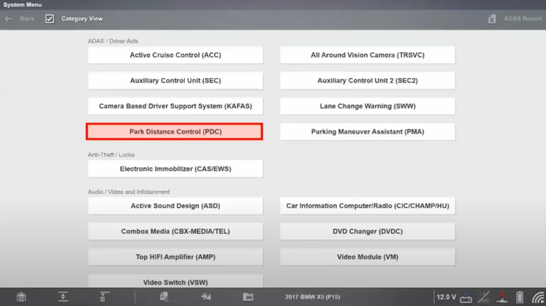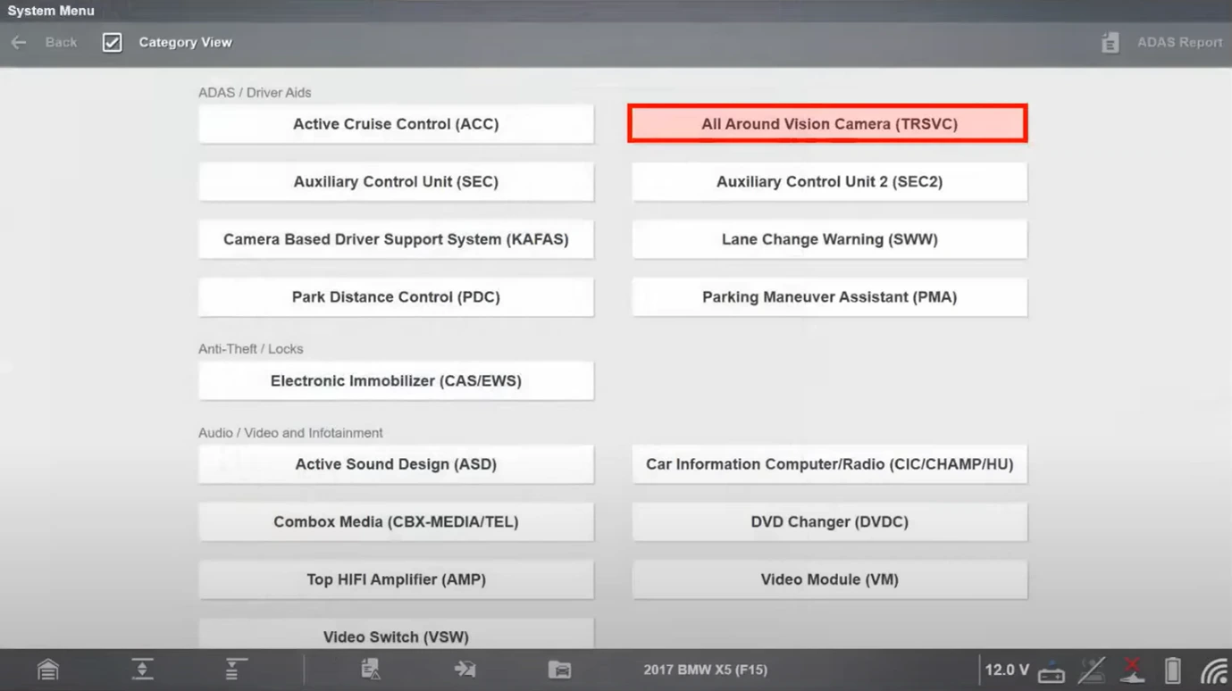 The 2017 BMW X5 is fitted with multiple ADAS components that can be diagnosed and recalibrated with Snap-on® diagnostic software: