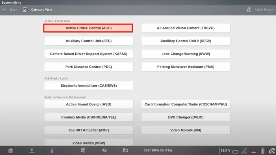 - Choose Adaptive Cruise Control (ACC).