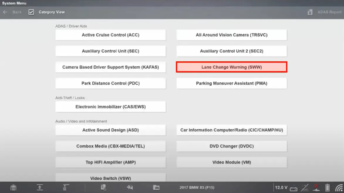 - ADAS/Driver AIDS > Lane Change Warning (SSW) > SWW Initialization > Follow the onscreen instructions
