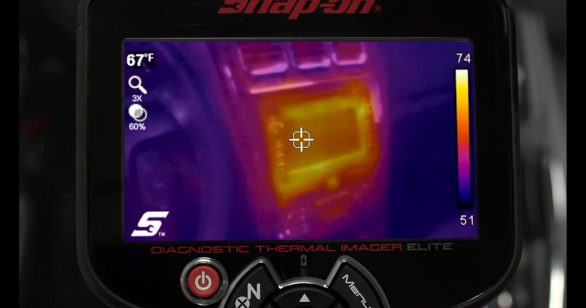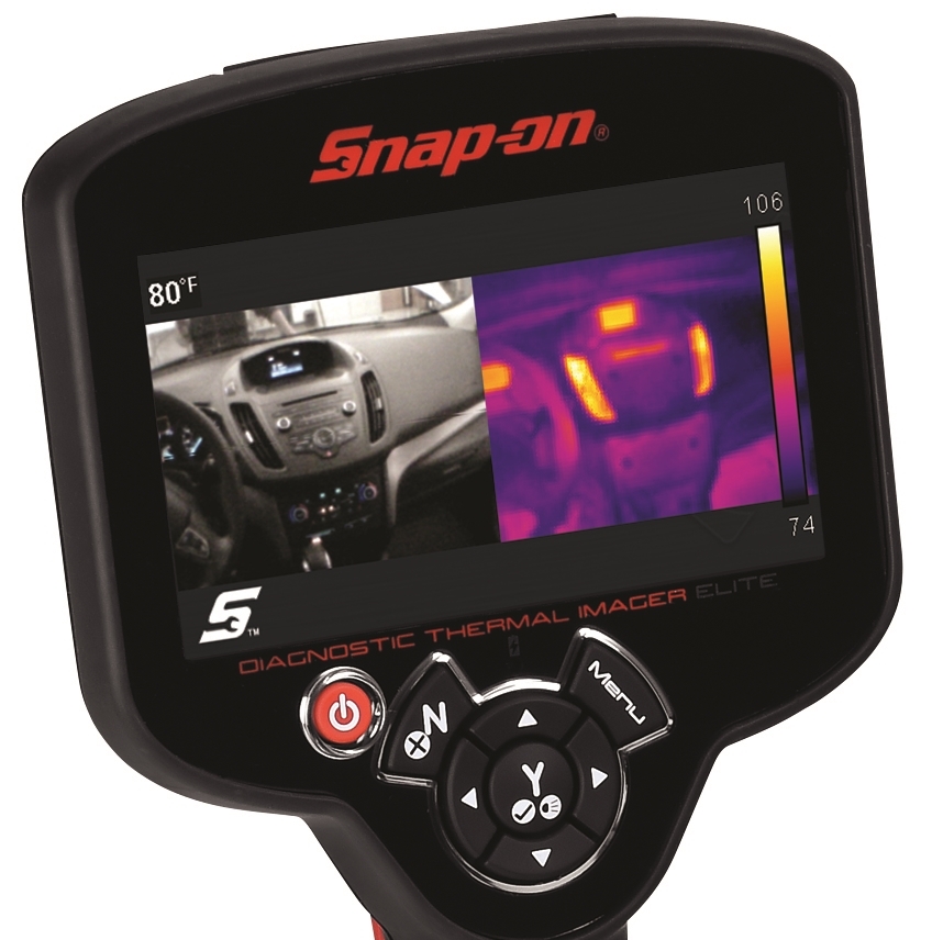 Color reference scale automatically calibrates, so you know the temperature of everything in the imageCustomised views on screen to assist in diagnosis and pinpointing locationDetect problems all around the vehicle: brakes, heated seats, misfires, worn bearings, belts, emission controls, and many moreErgonomic hand grip for comfort and easy access to tight areasFeatures image blending, split screen view, picture-in-picture view, record a video (20 seconds)Four-hour, high-power rechargeable lithium-ion battery with level indicatorIncludes Thermal Imager Elite, MicroSD card, AC adapter, USB cable and user guideLarge 4.3in 480 x 272 resolution screen and 9x/second refresh rate clearly reveal issuesPoint at any area of vehicle for detailed images of an object's heat signaturePull trigger to capture images; then use saved images to create convincing repair orders; save, store and print your images via Wi-Fi using the Snap-on cloudReference images show normal and failed components, so you know what to look forShows temperature extremesSnap-on Cloud Integration