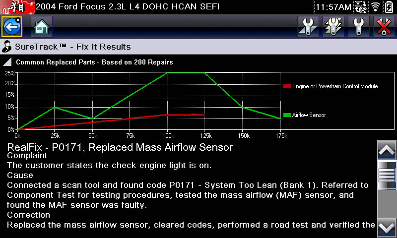 Exclusive guided component tests and location images to locate components faster help speed-up and simplify your diagnosis and repair process. This data is continually enhanced and updated with information based on real experience, straight from technicians and validated by our engineers. This means thousands more SureTrack® Real Fixes, PID Flags, images, tests and tips.