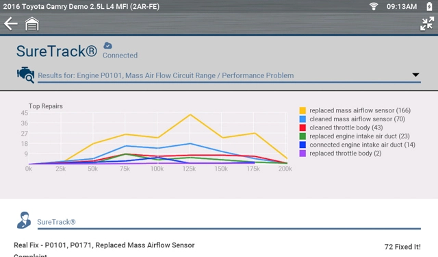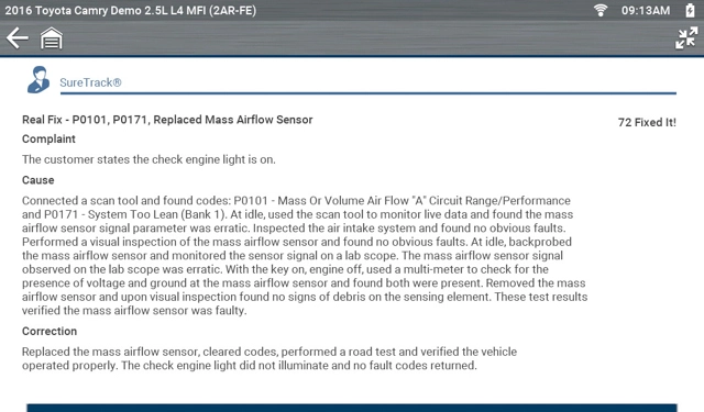 Exclusive guided component tests and location images to locate components faster help speed-up and simplify your diagnosis and repair process. This data is continually enhanced and updated with information based on real experience, straight from technicians and validated by our engineers. This means thousands more SureTrack® Real Fixes, PID Flags, images, tests and tips.