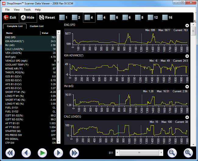 • Open scanner movie files on your computer that you have recorded on your diagnostic tools, as well as display up to 16 graphs on the screen at once so all of a vehicle’s scan data is immediately to hand