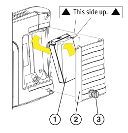 | 3. | Position the battery pack (packed separately in kit box) as shown below with the arrows facing up. |