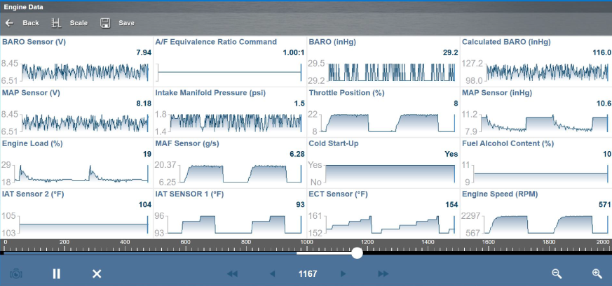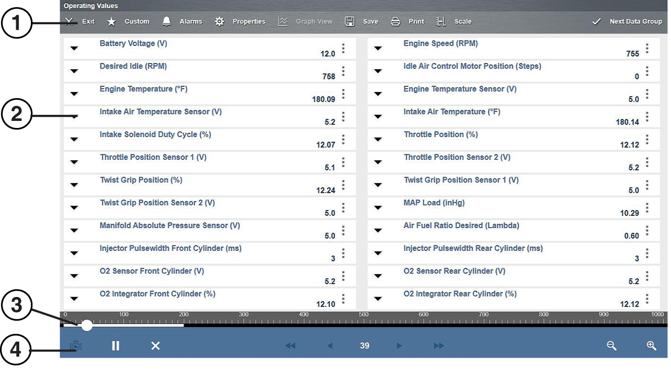 From the main system menu (in Scanner) select Data to view PIDs for the selected