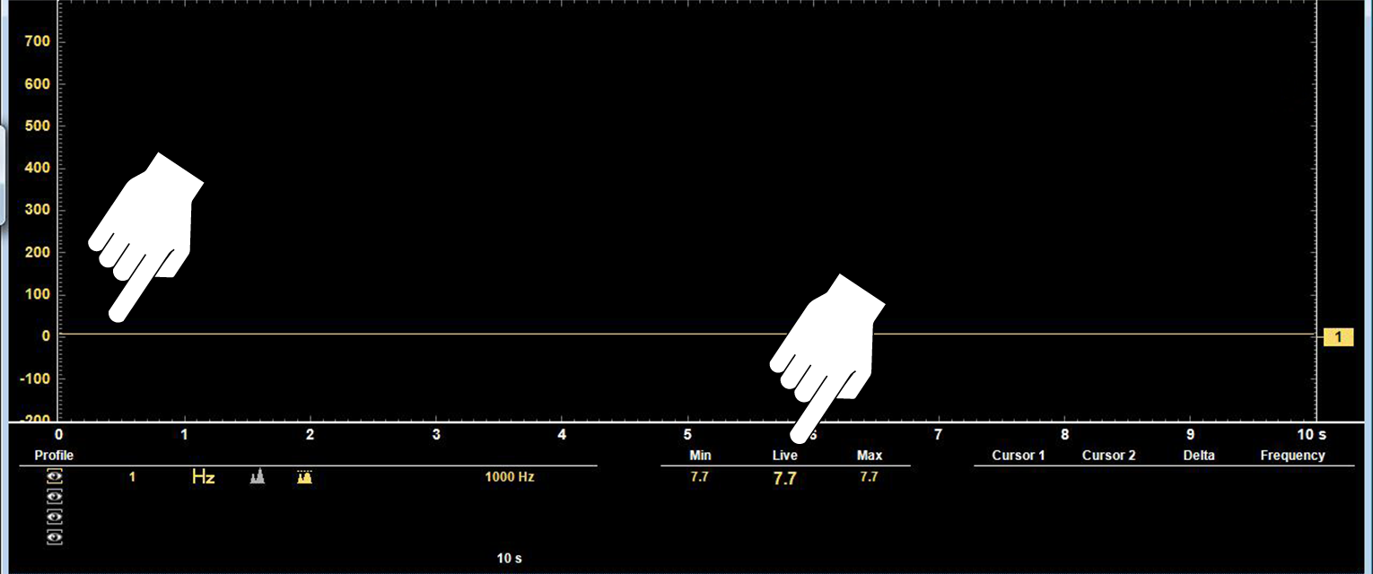 Scale at 1000Hz, frequency appears to be zero (is actually 7.7Hz)