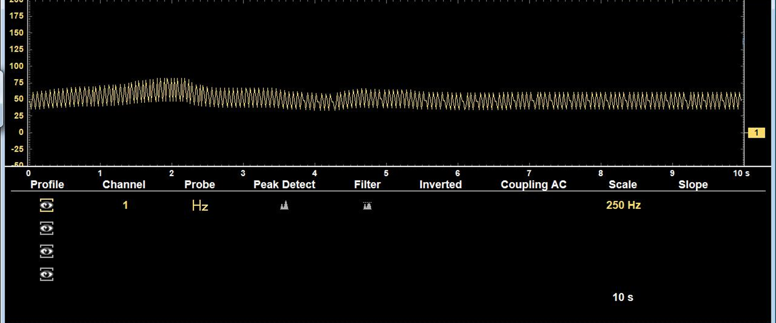 Displayed in Lab scope , it can be seen there is actually variation which the Hz graph is not displaying.