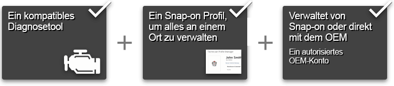 Richten Sie Ihr Snap-on-Technikerprofil ein, um die Verbindung Ihrer Diagnoseplattform(en) und Ihrer OEM-Zugriffskonten aufrechtzuerhalten.