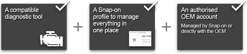 Setup your Snap-on Technician Profile to keep your diagnostics platform/s and your OEM access accounts connected.